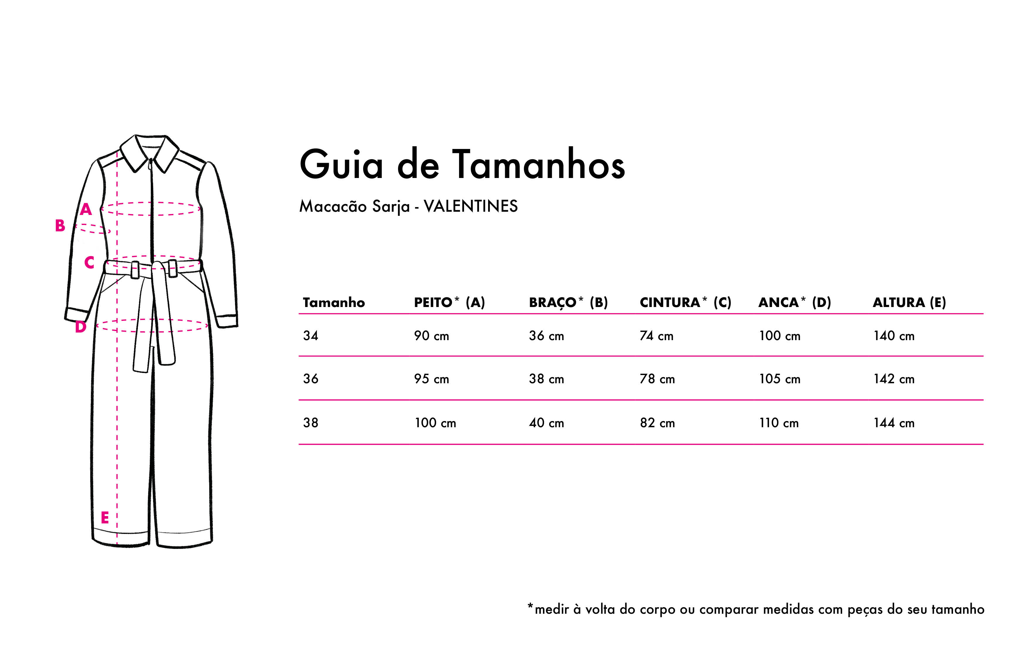 Para mais informações e medidas, consulte o nosso Guia de Tamanhos AQUI.